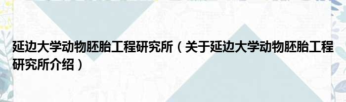 延邊大學動物胚胎工程研究所(關于延邊大學動物胚胎工程研究所介紹)