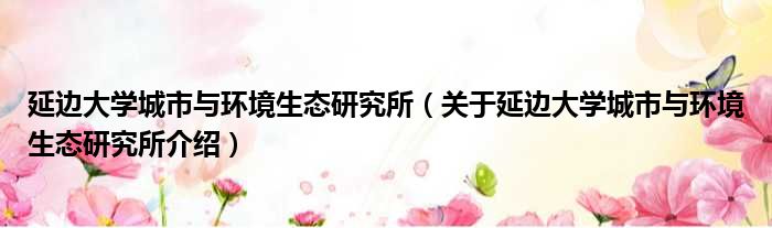 延邊大學城市與環境生態研究所(關于延邊大學城市與環境生態研究所介紹)
