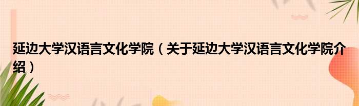 延邊大學漢語言文化學院(關于延邊大學漢語言文化學院介紹)