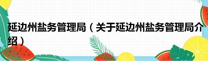 延邊州鹽務管理局(關于延邊州鹽務管理局介紹)