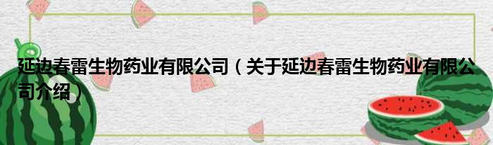 延邊春雷生物藥業有限公司(關于延邊春雷生物藥業有限公司介紹)