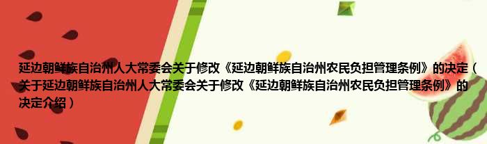 延邊朝鮮族自治州人大常委會關于修改《延邊朝鮮族自治州農民負擔管理條例》的決定(關于延邊朝鮮族自治州人大常委會關于修改《延邊朝鮮族自治州農民負擔管理條例》的決定介紹)