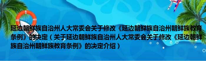 延邊朝鮮族自治州人大常委會關于修改《延邊朝鮮族自治州朝鮮族教育條例》的決定(關于延邊朝鮮族自治州人大常委會關于修改《延邊朝鮮族自治州朝鮮族教育條例》的決定介紹)