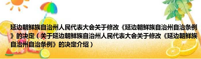 延邊朝鮮族自治州人民代表大會關于修改《延邊朝鮮族自治州自治條例》的決定(關于延邊朝鮮族自治州人民代表大會關于修改《延邊朝鮮族自治州自治條例》的決定介紹)