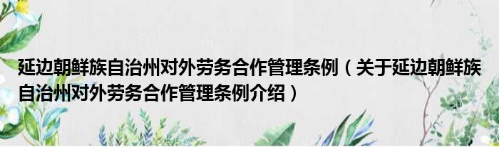 延邊朝鮮族自治州對外勞務合作管理條例(關于延邊朝鮮族自治州對外勞務合作管理條例介紹)