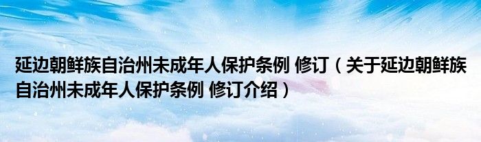 延邊朝鮮族自治州未成年人保護條例 修訂(關于延邊朝鮮族自治州未成年人保護條例 修訂介紹)
