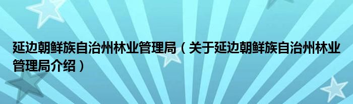 延邊朝鮮族自治州林業管理局(關于延邊朝鮮族自治州林業管理局介紹)