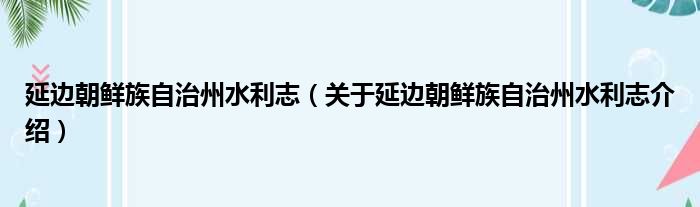 延邊朝鮮族自治州水利志(關于延邊朝鮮族自治州水利志介紹)
