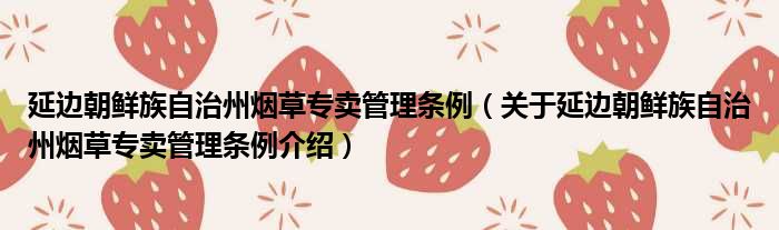 關于延邊朝鮮族自治州煙草專賣管理條例到此分享完畢,希望能幫助到您。
