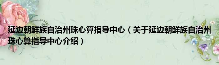 延邊朝鮮族自治州珠心算指導中心(關于延邊朝鮮族自治州珠心算指導中心介紹)