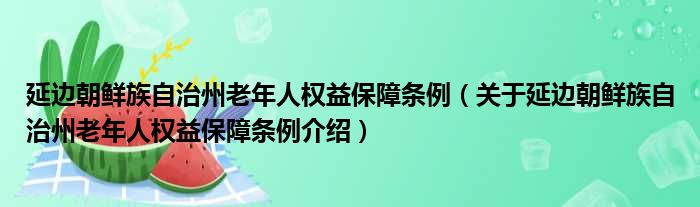 延邊朝鮮族自治州老年人權益保障條例(關于延邊朝鮮族自治州老年人權益保障條例介紹)