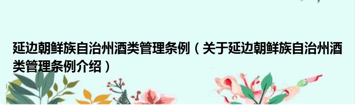 延邊朝鮮族自治州酒類管理條例(關于延邊朝鮮族自治州酒類管理條例介紹)