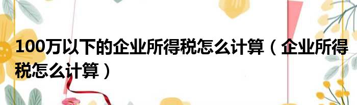100萬以下的企業所得稅怎么計算(企業所得稅怎么計算)