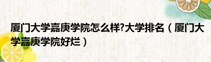 大家好,我是小夏,我來為大家解答以上問題。廈門大學嘉庚學院怎么樣?大學排名,廈門大學嘉庚學院好爛很多人還不知道,現在讓我們一起來看看吧!