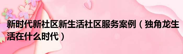 新時代新社區新生活社區服務案例(獨角龍生活在什么時代)