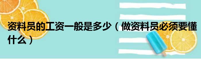 資料員的工資一般是多少(做資料員必須要懂什么)