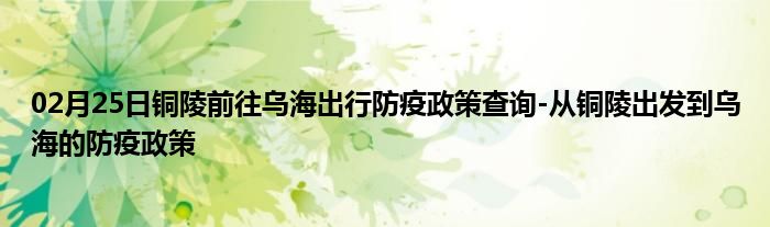 導讀 02月25日銅陵前往烏海出行防疫政策查詢-從銅陵出發到烏海的防疫政策(數據來源:本地寶)