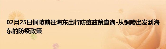 導讀 02月25日銅陵前往海東出行防疫政策查詢-從銅陵出發到海東的防疫政策(數據來源:本地寶)