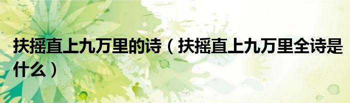 導讀 大家好,精選小編來為大家解答以上的問題。扶搖直上九萬里的詩,扶搖直上九萬里全詩是什么很多人還不知道,現在讓我們一起來看看吧!當日李