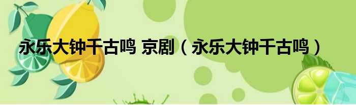 永樂大鐘千古鳴 京劇(永樂大鐘千古鳴)