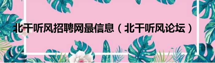 大家好,小霞來為大家解答以上的問題。北干聽風招聘網最信息,北干聽風論壇這個很多人還不知道,現在讓我們一起來看看吧!