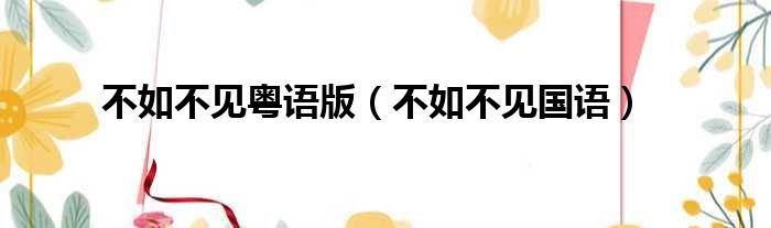 大家好,小霞來為大家解答以上的問題。不如不見粵語版,不如不見國語這個很多人還不知道,現在讓我們一起來看看吧!