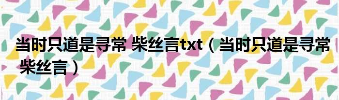 當時只道是尋常 柴絲言txt(當時只道是尋常 柴絲言)