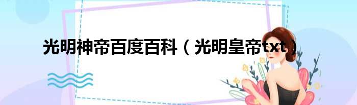 大家好,小霞來為大家解答以上的問題。光明神帝百度百科,光明皇帝txt這個很多人還不知道,現在讓我們一起來看看吧!
