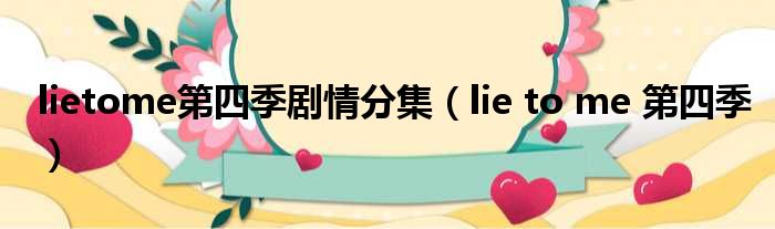 大家好,小霞來為大家解答以上的問題。lietome第四季劇情分集,lie to me 第四季這個很多人還不知道,現在讓我們一起來看看吧!