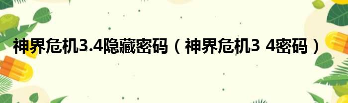 神界危機3.4隱藏密碼(神界危機3 4密碼)