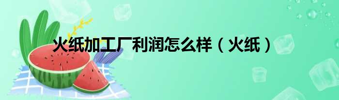 火紙加工廠利潤怎么樣(火紙)