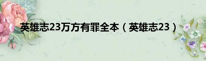 大家好,小霞來為大家解答以上的問題。英雄志23萬方有罪全本,英雄志23這個很多人還不知道,現在讓我們一起來看看吧!