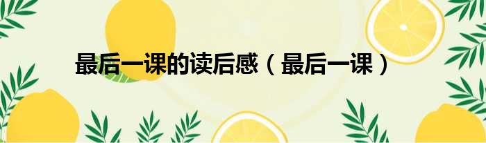 大家好,小霞來為大家解答以上的問題。最后一課的讀后感,最后一課這個很多人還不知道,現在讓我們一起來看看吧!