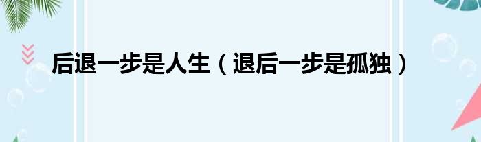 大家好,小霞來為大家解答以上的問題。后退一步是人生,退后一步是孤獨這個很多人還不知道,現在讓我們一起來看看吧!