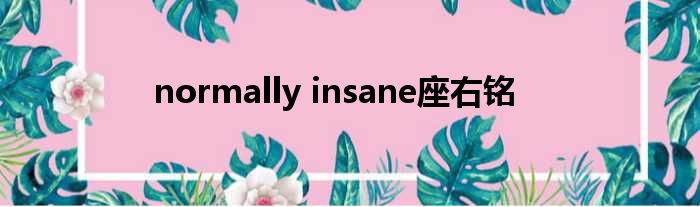 大家好,小霞來為大家解答以上的問題。normally insane座右銘這個很多人還不知道,現在讓我們一起來看看吧!