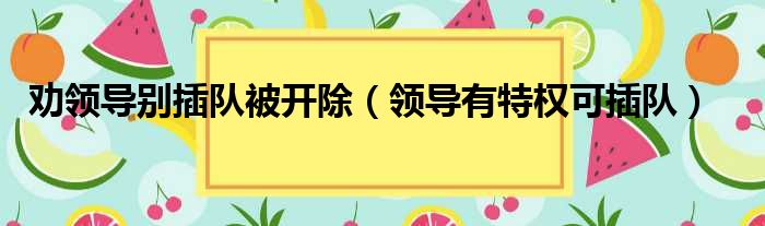 大家好,小霞來為大家解答以上的問題。勸領導別插隊被開除,領導有特權可插隊這個很多人還不知道,現在讓我們一起來看看吧!