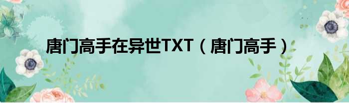 導讀 大家好,小霞來為大家解答以上的問題。唐門高手在異世TXT,唐門高手這個很多人還不知道,現在讓我們一起來看看吧!1、在武俠的世界里,唐門就