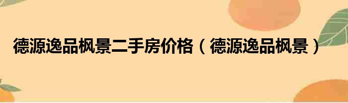 大家好,小霞來為大家解答以上的問題。德源逸品楓景二手房價格,德源逸品楓景這個很多人還不知道,現在讓我們一起來看看吧!