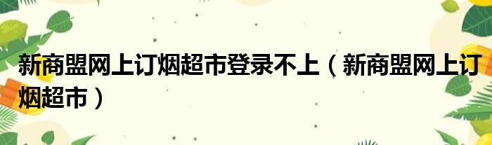 新商盟網上訂煙超市登錄不上(新商盟網上訂煙超市)