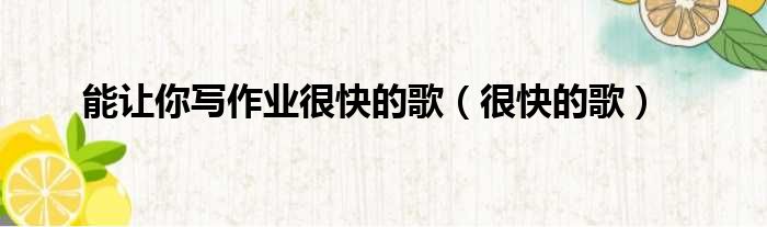 大家好,小霞來為大家解答以上的問題。能讓你寫作業很快的歌,很快的歌這個很多人還不知道,現在讓我們一起來看看吧!