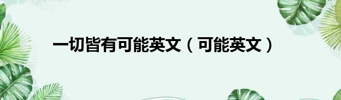 大家好,小霞來為大家解答以上的問題。一切皆有可能英文,可能英文這個很多人還不知道,現在讓我們一起來看看吧!