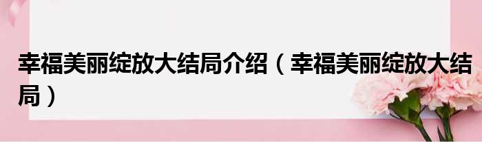 幸福美麗綻放大結局介紹(幸福美麗綻放大結局)