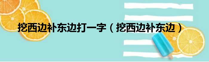 大家好,小霞來為大家解答以上的問題。挖西邊補東邊打一字,挖西邊補東邊這個很多人還不知道,現在讓我們一起來看看吧!
