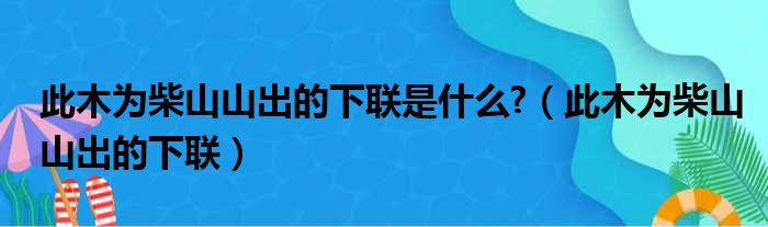此木為柴山山出的下聯是什么?(此木為柴山山出的下聯)