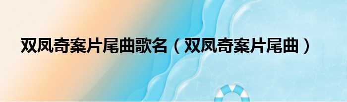 雙鳳奇案片尾曲歌名(雙鳳奇案片尾曲)