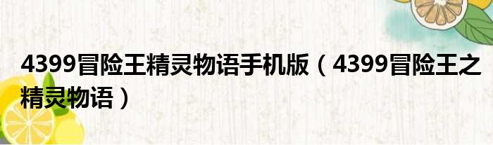 4399冒險王精靈物語手機版(4399冒險王之精靈物語)