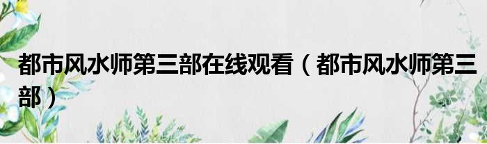 大家好,小霞來為大家解答以上的問題。都市風水師第三部在線觀看,都市風水師第三部這個很多人還不知道,現在讓我們一起來看看吧!