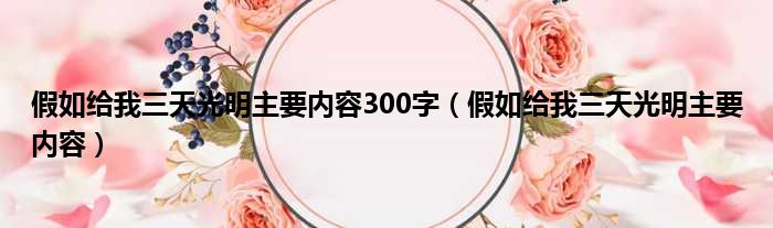 假如給我三天光明主要內容300字(假如給我三天光明主要內容)