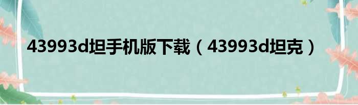 大家好,小霞來為大家解答以上的問題。43993d坦手機版下載,43993d坦克這個很多人還不知道,現在讓我們一起來看看吧!