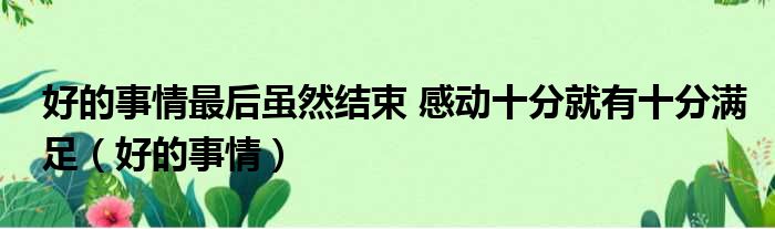 導讀 大家好,小霞來為大家解答以上的問題。好的事情最后雖然結束 感動十分就有十分滿足,好的事情這個很多人還不知道,現在讓我們一起來看看吧!